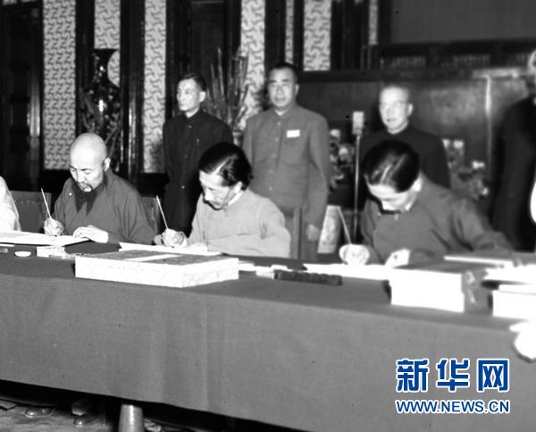 西藏地方政府代表在協(xié)議上簽字。 1951年5月23日,中央人民政府與西藏地方政府在北京簽訂《關(guān)于和平解放西藏辦法的協(xié)議》(簡(jiǎn)稱“十七條協(xié)議”),西藏實(shí)現(xiàn)和平解放,為西藏實(shí)行民族區(qū)域自治奠定了基礎(chǔ)。我西南、西北軍區(qū)部分部隊(duì)分路先后開赴西藏,9月9日某部先遣部隊(duì)進(jìn)抵拉薩,由張國(guó)華、譚冠三兩將軍率領(lǐng)的部隊(duì)10月26日到達(dá)拉薩,并舉行了入城儀式,12月20日兩支部隊(duì)在拉薩舉行勝利會(huì)師大會(huì)。新華社發(fā)(資料照片)