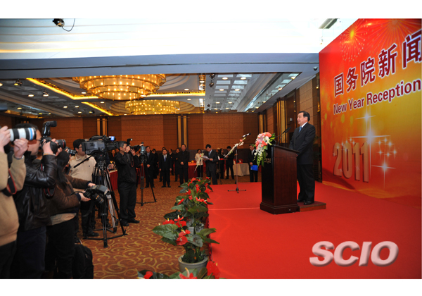 12月16日晚,國務院新聞辦公室在北京國際飯店舉行2011年新年招待會。圖為國新辦主任王晨致辭。(國新網(wǎng)郭研攝)