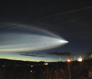 伊寧市民李峻還拍攝到了當(dāng)晚的“不明飛行物”照片。李峻說,當(dāng)晚他正駕車行駛清伊高速路上,他發(fā)現(xiàn)了一個呈圓形且?guī)в虚L長的光束尾翼的“不明飛行物”,停留在天空的時間很短。