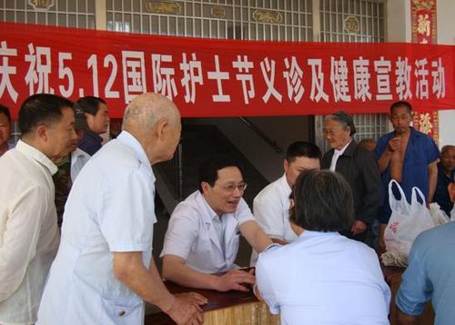 在“5.12”護(hù)士節(jié)來臨之際,為弘揚(yáng)南丁格爾精神,充分展示醫(yī)務(wù)人員良好的精神風(fēng)貌和職業(yè)風(fēng)范,市八院護(hù)理部特舉辦了義診和健康宣教活動來慶祝自己的節(jié)日。醫(yī)務(wù)人員來到楊橋鎮(zhèn)敬老院,為100多位老人進(jìn)行了健康體檢,并向他們進(jìn)行了健康教育宣傳,同時(shí)還給老人們送去了一些常用藥品及防暑降溫用品。圖為醫(yī)務(wù)人員為老人們進(jìn)行健康體檢和健康宣傳: