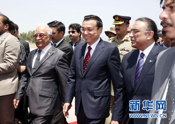 5月22日,中國國務院總理李克強乘專機抵達伊斯蘭堡,開始對巴基斯坦進行正式訪問。巴基斯坦總統(tǒng)扎爾達里、總理霍索到機場迎接。新華社記者馬占成 攝