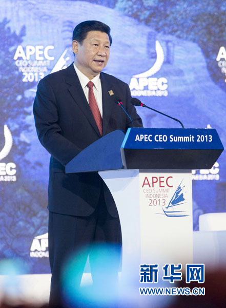 10月7日,國家主席習(xí)近平在印度尼西亞巴厘島出席亞太經(jīng)合組織工商領(lǐng)導(dǎo)人峰會,并發(fā)表《深化改革開放 共創(chuàng)美好亞太》的重要演講。新華社記者 王曄 攝