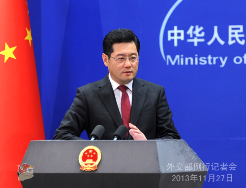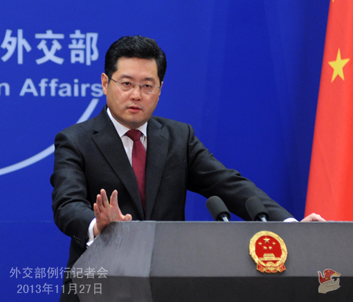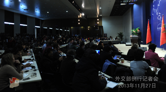2013年11月27日,外交部發(fā)言人秦剛主持例行記者會。