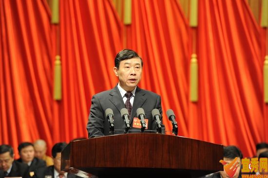 王明方在政協(xié)第十一屆安徽省委員會第一次會議上作十屆省政協(xié)常務(wù)委員會工作報告。