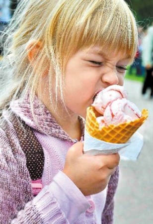 經(jīng)測定,100克冰淇淋中含水分74.4克、蛋白質2.4克、脂肪5.3克、糖17.3克,另含有少量的維生素、鈣、鉀、鋅等微量元素,其熱量相當于35克米飯。專家稱,人每天攝入的糖分不能過多,否則容易引發(fā)一些身體不適甚至疾病。冰淇淋的溫度一般在0℃左右,而人的正常體溫是37℃,如此懸殊的溫差對人的腸胃是一種很大的刺激,它會使胃腸血管收縮,消化液的分泌減少,特別是中醫(yī)學上所說的體質偏寒的人,吃冰品可能會引起拉肚子。而體質偏熱的人吃冰淇淋也要控量,雖然吃進嘴巴里是冰的,因為冰淇淋成分中熱量高的配料很多,到了肚子里,反而會成為“火”。
