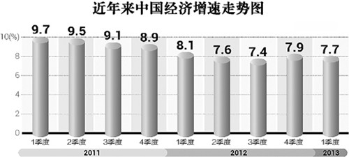 中國(guó)經(jīng)濟(jì)在2012年走出了下行、企穩(wěn)、回升的曲線后,今年一季度GDP同比增幅又回了一下頭,從去年四季度的7.9%降到7.7%,人們的疑慮和擔(dān)心由是而生。