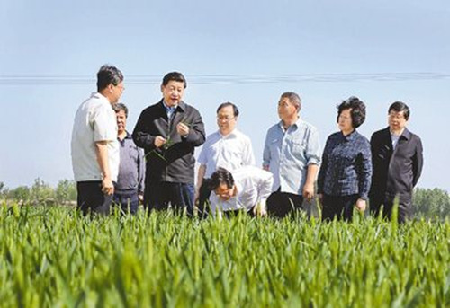習近平十分關心夏糧形勢。在列車上,他就向隨行的農(nóng)業(yè)部門負責人了解全國夏糧生產(chǎn)情況。到武清站一下列車,他直接來到南蔡村鎮(zhèn)丁家(瞿阝)村的小麥大田,仔細察看小麥長勢,向農(nóng)民詢問田間管理和預產(chǎn)情況,叮囑當?shù)馗刹考訌娹r(nóng)技服務,搞好田間管理,努力爭取夏糧豐收。他強調(diào),一個國家只有立足糧食基本自給,才能掌握糧食安全主動權,進而才能掌握經(jīng)濟社會發(fā)展這個大局。他希望天津加快發(fā)展現(xiàn)代都市型農(nóng)業(yè),努力提高糧食自給能力,為確保國家糧食安全多作貢獻。