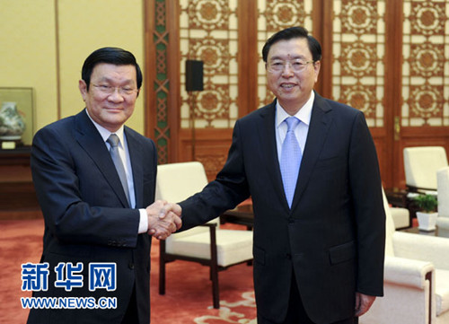 張德江會見越南國家主席張晉創(chuàng)