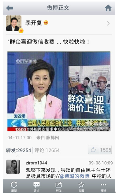 為了打擊中國(guó)官方宣傳渠道的公信力,您不斷轉(zhuǎn)發(fā)和傳播“全國(guó)人民喜迎油價(jià)上漲”“中國(guó)電信要向微信用戶(hù)收費(fèi)”等謠言,并公開(kāi)表示“謠言就是遙遙 領(lǐng)先的預(yù)言”,對(duì)這些事情您從未道歉,或者正面回應(yīng)過(guò)網(wǎng)友質(zhì)疑,這和您自詡反對(duì)謠言的言辭形成了鮮明的對(duì)比。對(duì)此您應(yīng)該給出一個(gè)合理的解釋?zhuān)降资窍矚g 謠言還是反對(duì)謠言?