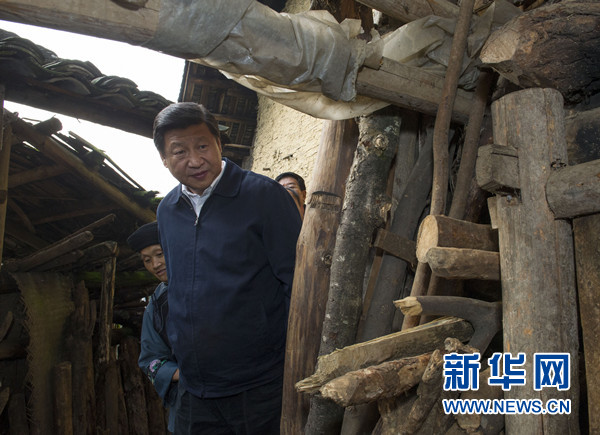 在湘西州花垣縣排碧鄉(xiāng)十八洞村,習(xí)近平到苗族貧困村民施齊文家中看望,坐下來同一家人算收支賬,詢問有什么困難、有什么打算,察看了他家的谷倉、床鋪、灶房、豬圈,勉勵一家人增強信心,在黨和政府關(guān)心下用勤勞和智慧創(chuàng)造美好生活。