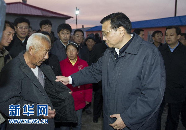 今夏,黑龍江部分地區(qū)遭受嚴(yán)重洪澇災(zāi)害,近9萬(wàn)戶群眾的房屋損毀或倒塌。眼下臨近隆冬,災(zāi)區(qū)又地處嚴(yán)寒地帶,正值過(guò)冬安置的關(guān)鍵時(shí)刻,受災(zāi)群眾能不能安全溫暖過(guò)冬,李克強(qiáng)十分牽掛。他來(lái)到受災(zāi)最嚴(yán)重的同江市八岔赫哲族村,踩著泥濘濕滑的道路,查看村民房屋狀況和越冬準(zhǔn)備情況。他對(duì)圍攏來(lái)的群眾說(shuō),你們這里洪災(zāi)發(fā)生后,黨中央國(guó)務(wù)院高度重視,習(xí)近平總書(shū)記等中央領(lǐng)導(dǎo)同志作出批示,省委、省政府帶領(lǐng)大家?jiàn)^力搶險(xiǎn)救災(zāi),做了大量艱苦細(xì)致的工作,取得了抗洪救災(zāi)的勝利,沒(méi)有因?yàn)?zāi)死亡一個(gè)人。他特別叮囑當(dāng)?shù)馗刹,這里冬天冰天雪地,最低溫度達(dá)零下40攝氏度,要把排查工作做細(xì)做深做到位,看群眾房屋安不安全,保暖程度夠不夠,絕不能讓一個(gè)群眾受凍,使大家住得保暖、住得保險(xiǎn)。暮色漸濃,李克強(qiáng)走進(jìn)安置受災(zāi)五保戶和特困戶的銀川鄉(xiāng)幸福大院,看到新建的安置房里暖融融的,他十分高興。他對(duì)周圍的群眾說(shuō),黨和政府惦記你們的冷暖,我們一起努力共渡難關(guān)、重建家園。冬天過(guò)暖和了,來(lái)年一定有好春天、好日子?疾旎氐今v地,李克強(qiáng)又立即召開(kāi)工作會(huì),進(jìn)一步部署做好群眾越冬、災(zāi)后重建、水毀工程修復(fù)和今冬明春農(nóng)業(yè)生產(chǎn)等工作。