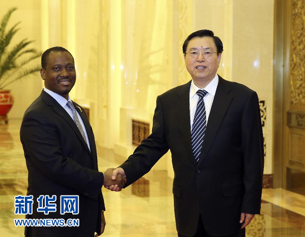 張德江說,今年是中國和科特迪瓦建交30周年。30年來,兩國關(guān)系發(fā)展順利,經(jīng)貿(mào)合作穩(wěn)步增長,文化、地方等領(lǐng)域交流十分活躍。中國高度重視發(fā)展中科關(guān)系,是科特迪瓦的可靠朋友和真誠伙伴。當(dāng)前,兩國正致力于實現(xiàn)各自國家的宏偉藍圖,中方愿與科方攜手努力,本著互利共贏的原則,深化經(jīng)貿(mào)合作,積極參與科特迪瓦的經(jīng)濟建設(shè),促進共同發(fā)展。