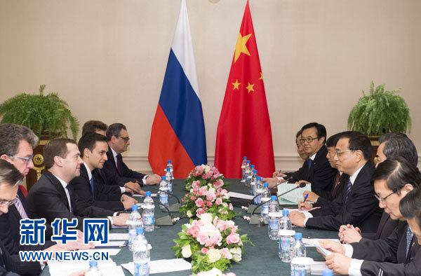 李克強(qiáng)指出,上海合作組織是中俄開展戰(zhàn)略合作的重要平臺,雙方應(yīng)保持密切溝通,攜手推動上合組織向前發(fā)展,在安全和務(wù)實合作兩方面不斷取得新成果。要加快推進(jìn)上合組織互聯(lián)互通建設(shè),深化投資和金融合作,加強(qiáng)生態(tài)和能源合作,促進(jìn)人文交流,共同維護(hù)地區(qū)和世界的和平、穩(wěn)定與發(fā)展。