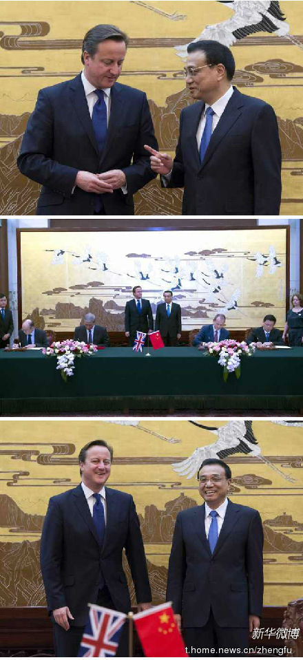 新華網(wǎng)北京12月2日電(記者譚晶晶)國務(wù)院總理李克強2日上午與英國首相卡梅倫舉行會談后,共同見證了兩國投資、科技創(chuàng)新、金融、司法、文化、衛(wèi)生等領(lǐng)域10個合作文件的簽署。