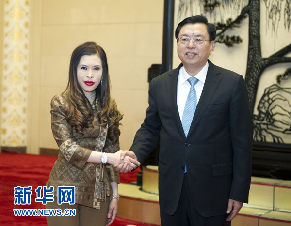 12月10日,全國人大常委會委員長張德江在北京人民大會堂會見來華出席第6屆“中泰一家親”音樂歌舞晚會的泰國朱拉蓬公主。新華社記者謝環(huán)馳攝