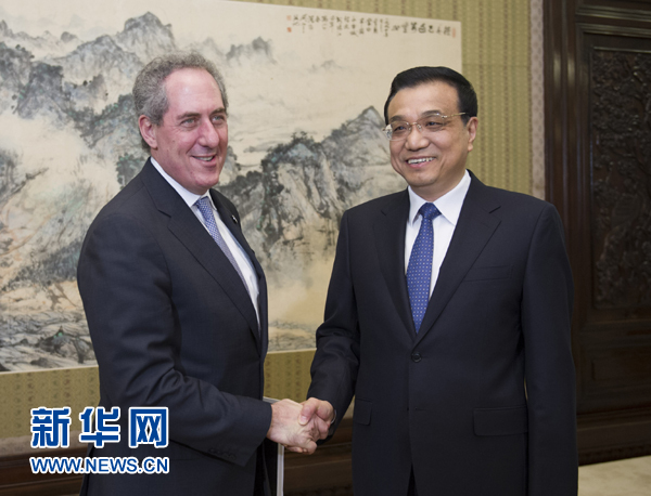 這是李克強與美國貿(mào)易代表弗羅曼握手。新華社記者 謝環(huán)馳 攝