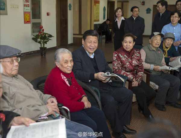 新華網(wǎng)北京12月28日電 據(jù)新華社新華視點微博報道,在四季青敬老院,正在開展讀書讀報活動的老年人見到總書記來了,十分激動,熱情邀請總書記聽他們誦讀《養(yǎng)生歌》。習近平認真聽完后,同老人們交流心得。他說,活到老,學到老。保持健康心態(tài)和身體,就要靠這樣積極進取的精神。從你們的讀書活動中我得到很多啟示。