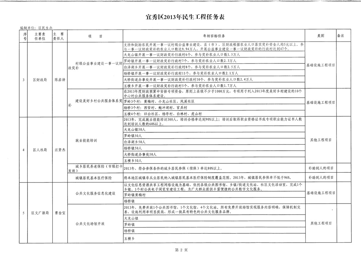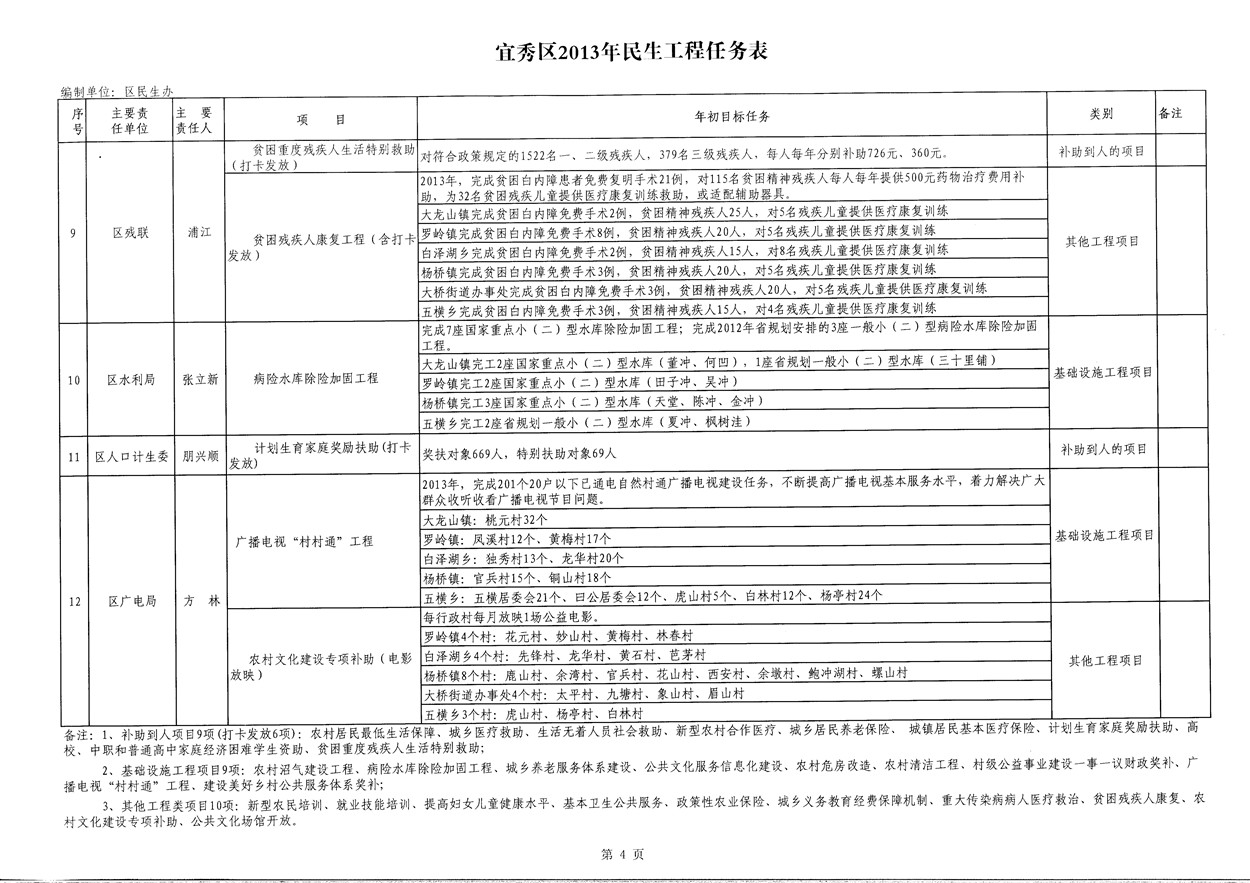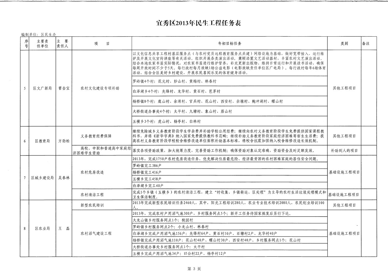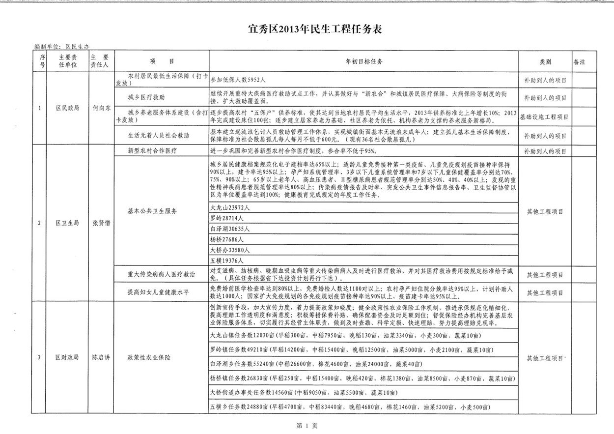 宜秀區(qū)2013年民生工程任務(wù)表