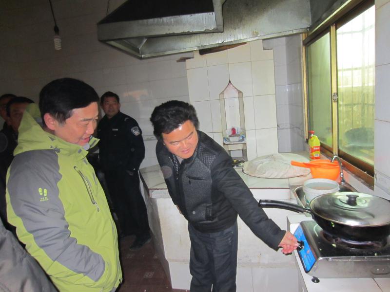 圖為省農(nóng)委沼氣民生工程考評組察看曰公村沼氣使用情況