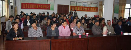 在黃石村村部,能容納90人的三樓會(huì)議室座無虛席,參加培訓(xùn)的農(nóng)民紛紛表示,在陰雨天開展技術(shù)培訓(xùn),既學(xué)到了知識(shí),又未占用農(nóng)業(yè)生產(chǎn)時(shí)間,大家積極性很高。中午培訓(xùn)間隙,專家們現(xiàn)場(chǎng)指導(dǎo)雨天秧田管理要點(diǎn)。當(dāng)天晚上,區(qū)農(nóng)業(yè)局會(huì)同該鄉(xiāng)農(nóng)委召集了30多位農(nóng)民,聚集在獨(dú)秀村建新組黃自發(fā)家,就當(dāng)前農(nóng)業(yè)生產(chǎn)技術(shù)要點(diǎn)予以詳細(xì)講解。