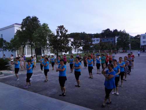 以前寂靜的小山村,老百姓們除了少數(shù)人打打麻將、撲克牌以外,其余人都在家看電視,業(yè)余生活單一且枯燥無(wú)味。如今,每天傍晚,五橫社區(qū)的男女老少們便早早的吃過(guò)晚飯,成群結(jié)隊(duì)、有說(shuō)有笑的來(lái)到各自組建廣場(chǎng)舞隊(duì)伍的廣場(chǎng),隨著歡快的舞曲,大伙排著整齊的方陣跳起她們熱愛(ài)的廣場(chǎng)舞。有的隊(duì)伍在中場(chǎng)休息時(shí),大家還自告奮勇地拿起麥克風(fēng),老年人唱起了他(她)們?cè)?jīng)酷愛(ài)的黃梅戲、革命老歌曲;年輕人則唱起了流行、通俗歌曲;小朋友們也爭(zhēng)先恐后的唱起了兒歌;整個(gè)廣場(chǎng)被歡聲笑語(yǔ)所籠罩,大家都玩得非常開(kāi)心。