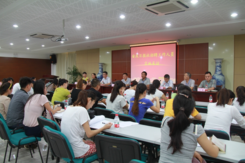 8月6日上午,在大橋開發(fā)區(qū)永安電子科技公司考點上,來自省內(nèi)外的近40名考生參加了安慶日報社招聘會議。會上,考生們圍繞大橋開發(fā)區(qū)優(yōu)化服務(wù)環(huán)境這一主題,在聽取大橋開發(fā)區(qū)服務(wù)企業(yè)情況及永安電子科技公司發(fā)展情況后,通過現(xiàn)場提問、車間采訪等形式,收集第一手資料,撰寫新聞報道。圖為招聘現(xiàn)場。(胡樹青)