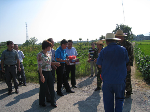 在廣播電視村村通施工現(xiàn)場(chǎng),胡忠明為一線工人送上防暑降溫用品,叮囑他們安全施工,并到村民家中,實(shí)地察看宜秀有線臺(tái)收看情況。