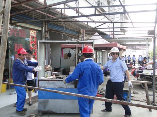 在206國道大龍山鎮(zhèn)沿線,鎮(zhèn)機(jī)關(guān)工作人員分成兩組,分別向總鋪段和永林段沿街商戶講解文明創(chuàng)建的重要意義,取得他們的理解與支持,并幫助他們將堆放在違建棚中的物品搬入店中,恢復(fù)道路的整潔。