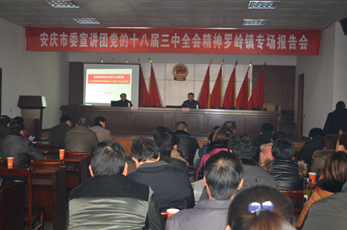 12月26日上午,羅嶺鎮(zhèn)組織學(xué)習(xí)黨的十八屆三中全會精神專題報(bào)告會。鎮(zhèn)機(jī)關(guān)全體干部,鎮(zhèn)直單位負(fù)責(zé)人,各村(社區(qū))兩委共計(jì)130人參加學(xué)習(xí)。羅嶺鎮(zhèn)邀請了市委黨校校委委員、教育長肖克順做宣講報(bào)告。