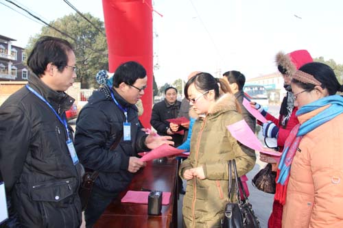 12月30日,我區(qū)在各大商業(yè)集聚區(qū)和集貿(mào)市場集中開展第三次全國經(jīng)濟普查宣傳活動。工作人員向商鋪和行人發(fā)放經(jīng)普告知書1000多份,營造了良好的普查氛圍。圖為區(qū)經(jīng)普辦在大龍山鎮(zhèn)向行人宣傳經(jīng)普知識的情景。( 陳秀根 余陪球 梅林)