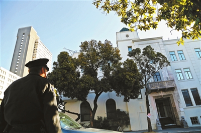1月4日,一名警察在中國(guó)駐美國(guó)舊金山總領(lǐng)事館正門對(duì)面巡視。美國(guó)舊金山警方已經(jīng)對(duì)中國(guó)駐當(dāng)?shù)乜傤I(lǐng)事館實(shí)行24小時(shí)保護(hù) 新華社發(fā)