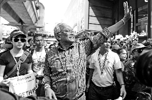 反對(duì)派領(lǐng)導(dǎo)人素貼·特素班13日晚間呼吁支持者加大封鎖力度,繼續(xù)阻止公務(wù)員上班。“我們必須包圍政府建筑,上午去關(guān)閉他們,下午再撤走。”素貼說。