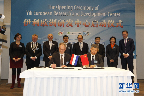 啟動儀式上,伊利集團向到場的上百位歐洲著名學府、研究機構的代表公布了研發(fā)中心2014年度的8個研究方向,中國駐荷蘭大使陳旭、荷蘭外商投資局局長Jeroen Nijland、荷蘭瓦赫寧根市市長Geert van Rumund、瓦赫寧根大學董事長Aalt Dijkhuizen、伊利集團董事長潘剛等代表出席了揭牌儀式。