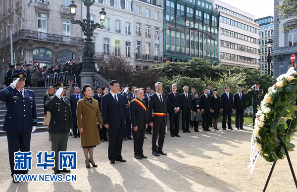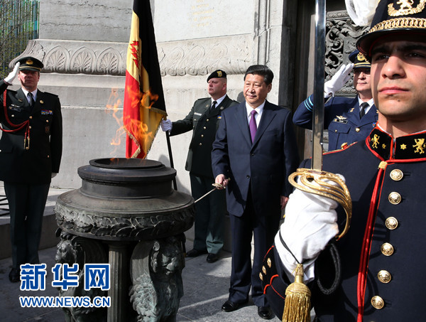 3月30日,中國國家主席習(xí)近平在布魯塞爾向比利時(shí)無名戰(zhàn)士墓獻(xiàn)花圈。 新華社記者 龐興雷 攝