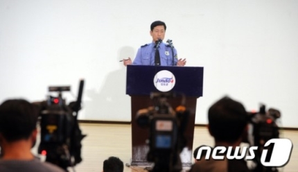 韓國海洋警察廳裝備技術局局長高明錫在珍島郡廳召開發(fā)布會。(圖片來自NEWS1)