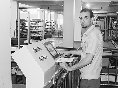 中埃蘇伊士經(jīng)貿(mào)合作區(qū)內(nèi),巨石集團埃及公司年產(chǎn)8萬噸玻璃纖維。圖為生產(chǎn)線上的埃及技術(shù)員。 |