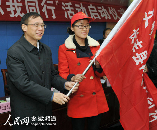 在合肥市長豐縣“文明上網(wǎng)、你我同行”活動啟動儀式上,安徽省互聯(lián)網(wǎng)宣傳管理辦公室主任章理中為該縣文明上網(wǎng)志愿者授旗。