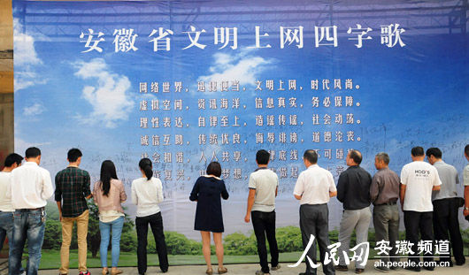 合肥市包河區(qū)舉辦文明上網(wǎng)“四字歌”簽名活動。(李文琦 供圖)