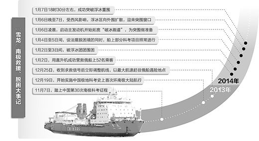 北京時間1月7日18時30分,在南極遇冰受阻5天的雪龍船,抓住風向轉(zhuǎn)變的有利時機,經(jīng)過超14個小時的努力,成功沖出厚重的密集浮冰區(qū),勝利突圍。
