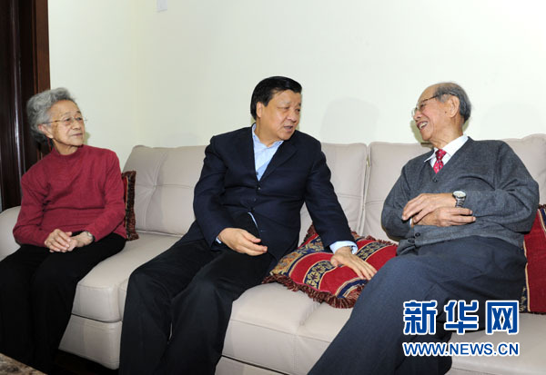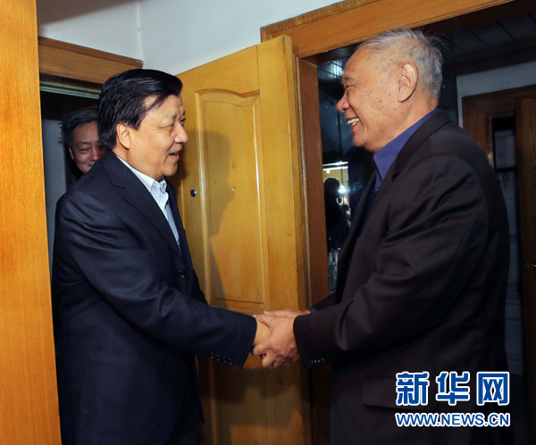 1月25日,中共中央政治局常委、中央書(shū)記處書(shū)記劉云山代表習(xí)近平總書(shū)記和黨中央,登門(mén)看望國(guó)家最高科技獎(jiǎng)獲得者謝家麟、鄭哲敏、王小謨,向他們致以良好祝愿,向科技工作者致以新春祝福。這是劉云山看望爆炸力學(xué)專(zhuān)家、中國(guó)科學(xué)院院士、中國(guó)工程院院士鄭哲敏。 新華社記者饒愛(ài)民攝