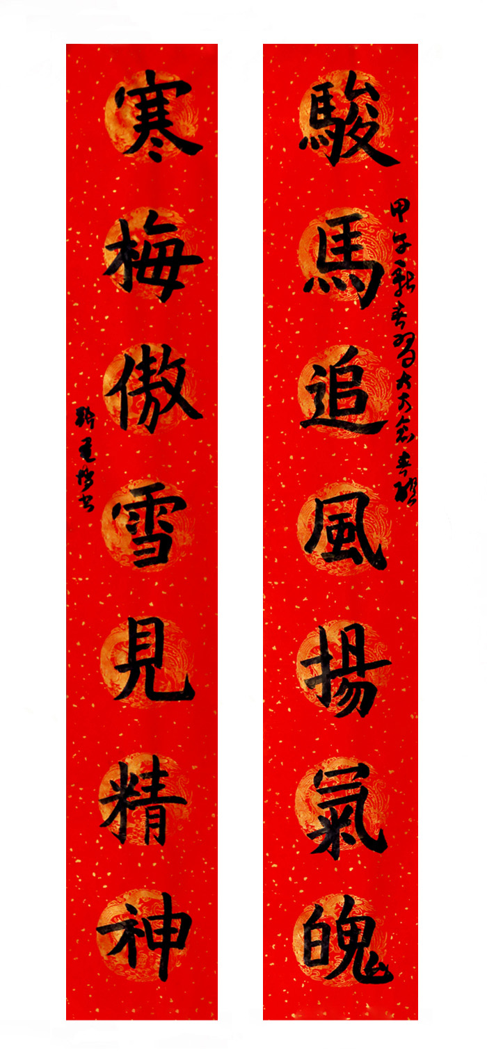 自幼熱愛書法的張圣博小朋友萌生了將兩幅春聯(lián)書寫出來的想法。據(jù)圣博小朋友的父親介紹,他們非常支持孩子的想法。春節(jié)期間,小圣博認(rèn)真念讀兩副春聯(lián),領(lǐng)悟其中含義與氣勢,揣摩選擇字體,一天時間里就書寫好了。