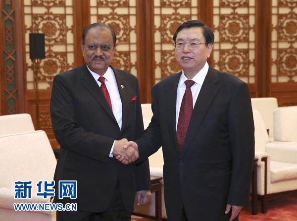 2月19日,全國人大常委會(huì)委員長張德江在北京人民大會(huì)堂會(huì)見巴基斯坦總統(tǒng)侯賽因。新華社記者 龐興雷 攝
