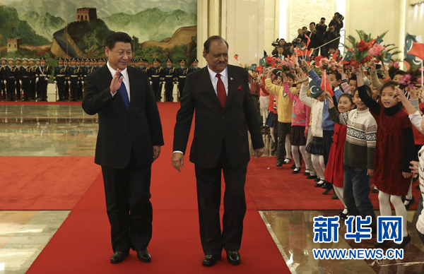 新華網北京2月19日電(記者劉華)國家主席習近平19日在人民大會堂同巴基斯坦總統(tǒng)侯賽因舉行會談。兩國元首暢敘中巴傳統(tǒng)友誼,規(guī)劃兩國關系未來,決定共同致力于推進政治基礎更加牢固、經濟紐帶更加緊密、安全合作更加深化、人文聯(lián)系更加通暢的中巴戰(zhàn)略合作伙伴關系。
