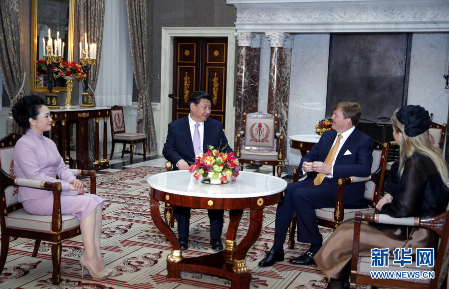 3月22日,國家主席習(xí)近平在阿姆斯特丹會(huì)見荷蘭國王威廉-亞歷山大。當(dāng)習(xí)近平和夫人彭麗媛抵達(dá)王宮時(shí),威廉-亞歷山大國王和馬克西瑪王后熱情迎接。雙方進(jìn)行了親切友好的交談。資料圖