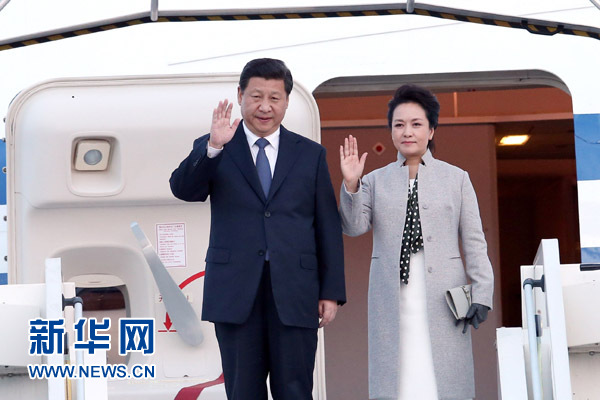 當(dāng)?shù)貢r(shí)間25日下午6時(shí)40分許,習(xí)近平乘坐的專機(jī)抵達(dá)里昂機(jī)場(chǎng)。法國(guó)外長(zhǎng)法比尤斯受法國(guó)總統(tǒng)奧朗德指派專程前來迎接習(xí)近平和夫人彭麗媛。羅訥省省長(zhǎng)卡朗科、里昂市長(zhǎng)科隆也到機(jī)場(chǎng)歡迎。