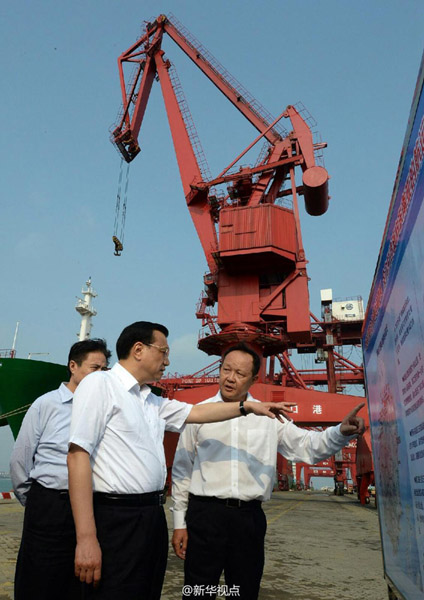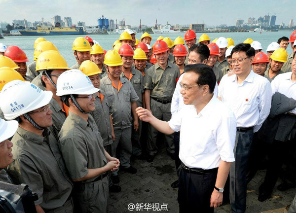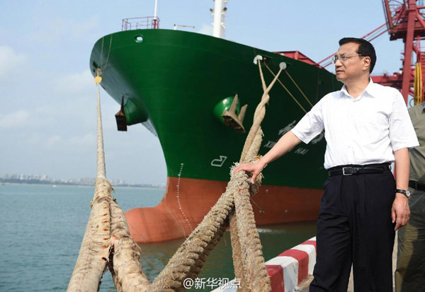 李克強(qiáng)總理到?诟鄞a頭了解貨物吞吐量及發(fā)展規(guī)劃等情況。他說,海南省四面環(huán)海,地處改革開放前沿。作為中國最大的經(jīng)濟(jì)特區(qū),海南的開放要從國家層面通盤考慮,力爭成為國家對外開放的重要支撐點,要敢闖敢試,用開放帶動、促進(jìn)改革,倒逼改革。