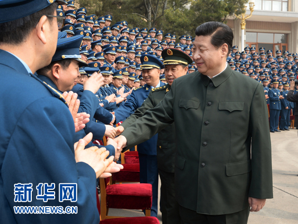 新華網(wǎng)北京4月14日電(記者張玉清、李宣良)中共中央總書記、國(guó)家主席、中央軍委主席習(xí)近平14日專程到空軍機(jī)關(guān)就空軍建設(shè)和軍事斗爭(zhēng)準(zhǔn)備進(jìn)行調(diào)研,代表黨中央、中央軍委向空軍全體官兵致以誠(chéng)摯的問(wèn)候,強(qiáng)調(diào)要緊緊圍繞黨在新形勢(shì)下的強(qiáng)軍目標(biāo),全面加強(qiáng)部隊(duì)革命化現(xiàn)代化正規(guī)化建設(shè),加快建設(shè)一支空天一體、攻防兼?zhèn)涞膹?qiáng)大人民空軍,為實(shí)現(xiàn)中國(guó)夢(mèng)、強(qiáng)軍夢(mèng)提供堅(jiān)強(qiáng)力量支撐。