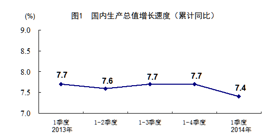 2013年各季度及2014年一季度GDP環(huán)比增速分別為1.5%、1.8%、2.3%、1.7%、1.4%。