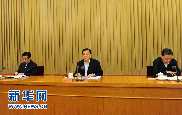 4月18日,中共中央政治局常委、中央書記處書記、中央黨的群眾路線教育實(shí)踐活動(dòng)領(lǐng)導(dǎo)小組組長劉云山在北京出席部委企業(yè)高校深化整改工作座談會(huì)并講話。新華社記者 饒愛民 攝