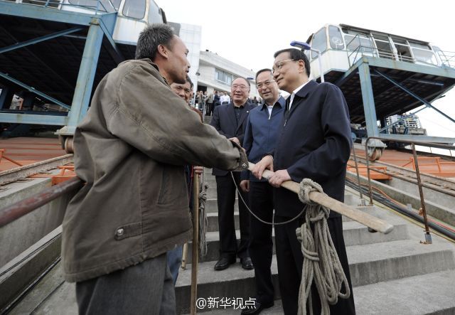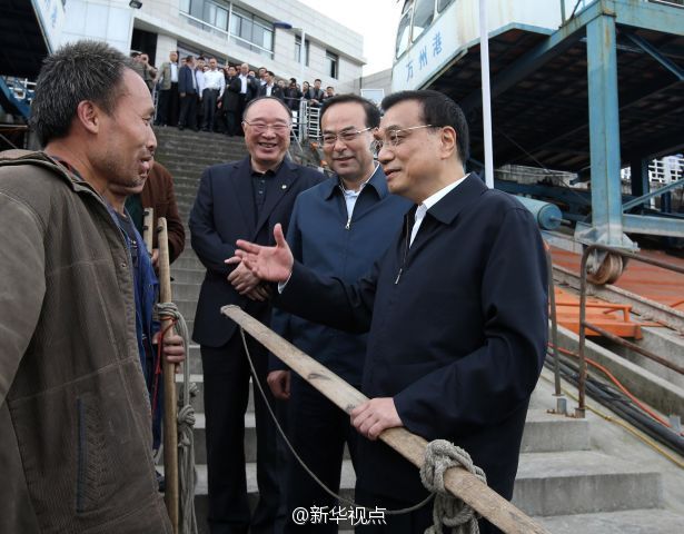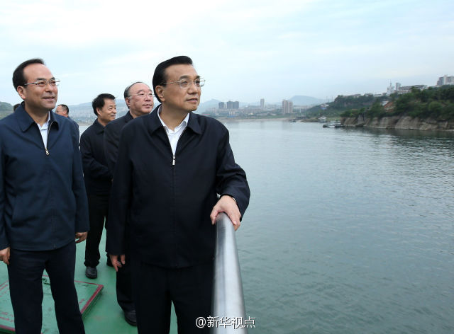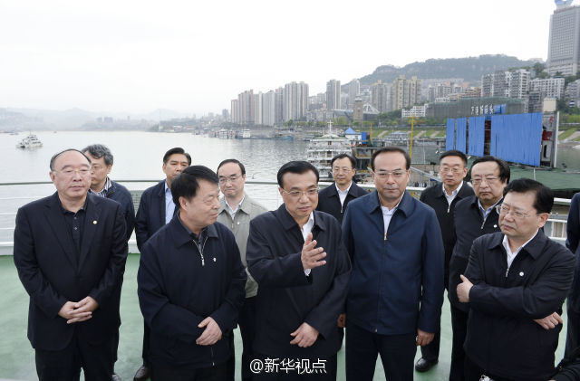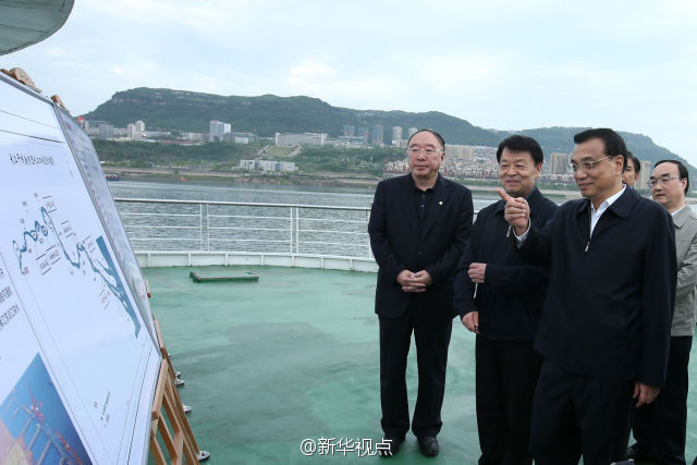 李克強(qiáng)總理27日在重慶萬州港乘船考察長江黃金水道。他來到輪船甲板上,認(rèn)真觀察港口基礎(chǔ)設(shè)施和航道建設(shè)現(xiàn)狀,與有關(guān)部門負(fù)責(zé)人共商長江黃金水道未來發(fā)展大計(jì)。李克強(qiáng)說,長江黃金水道是貫通東中西部、通航能力最強(qiáng)的航道,要用黃金水道串起長江經(jīng)濟(jì)帶“珍珠鏈”。